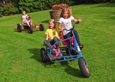 Ein Ort, an dem Spaß und Abenteuer keine Grenzen kennen. Draußen wartet ein großzügiges Gelände zum Spielen und Toben, inklusive der Möglichkeit, mit Tieren zu spielen und das Reiten zu erleben. Sollte das Wetter einmal nicht mitspielen, bietet unser großer Spielraum mit Tischkicker, Spielzeug und vielen weiteren Überraschungen die perfekte Alternative für ungetrübten Spielspaß. Hier sind strahlende Kinderaugen garantiert
